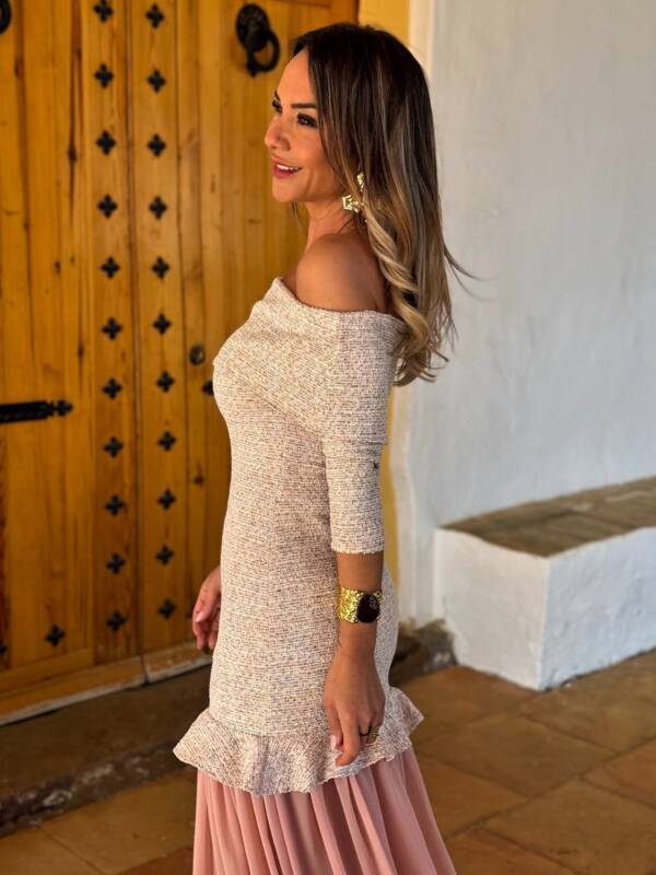 Vestido Bardot Cuello Marrón