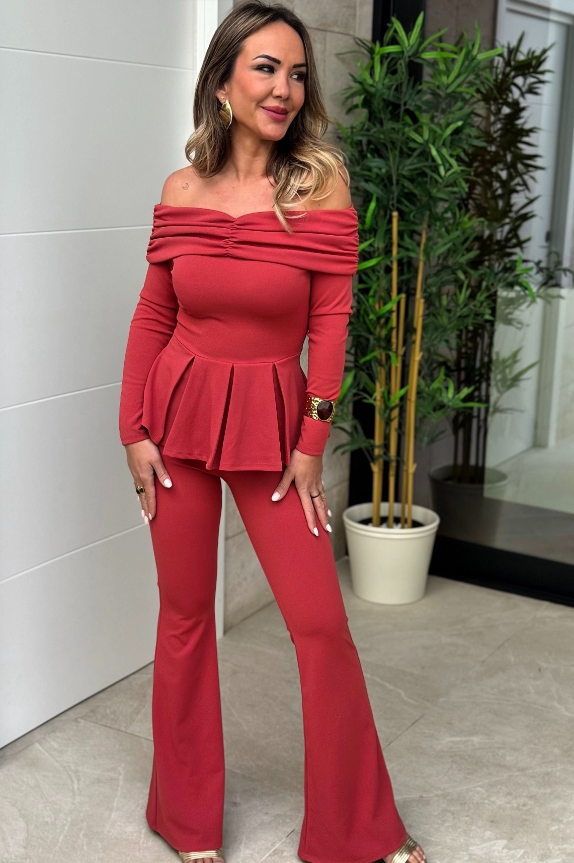 Conjunto Bardot Teja