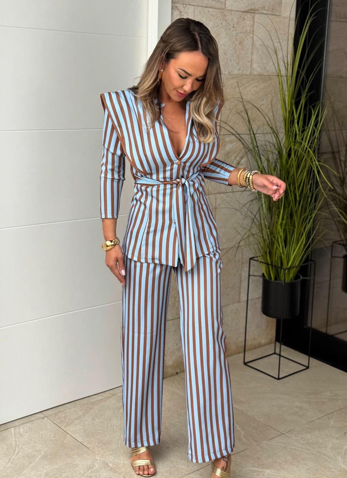 Conjunto Romina Celeste Marrón