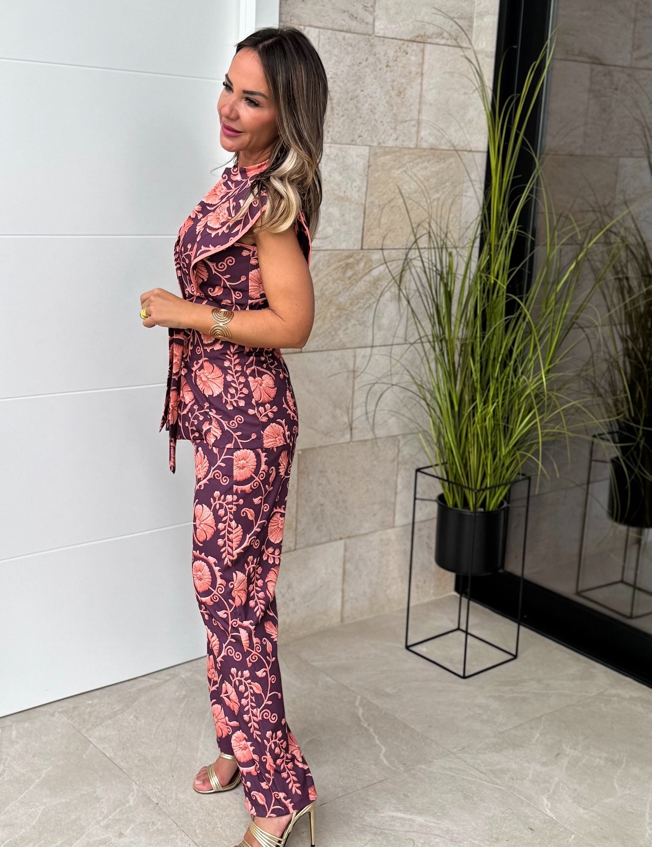Conjunto Romina Coral Berenjena Sin Mangas