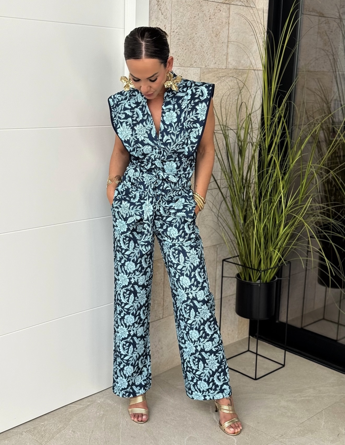 Conjunto Romina Petróleo Celeste Sin Mangas