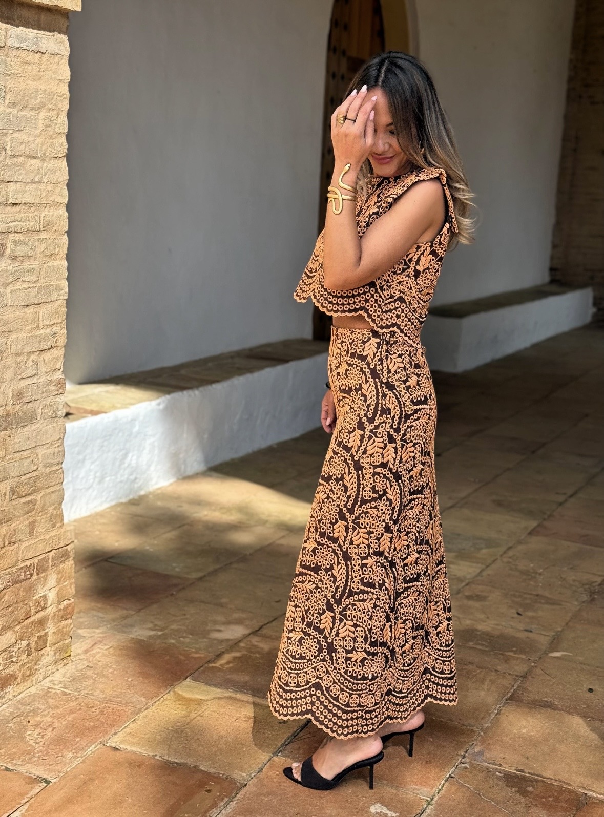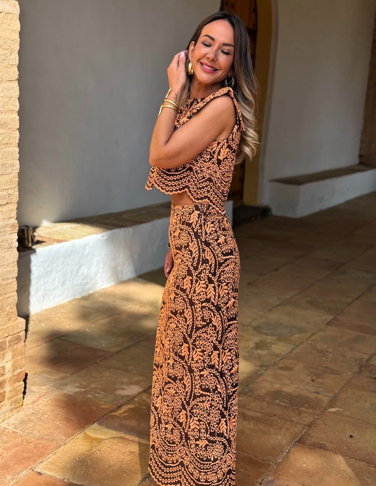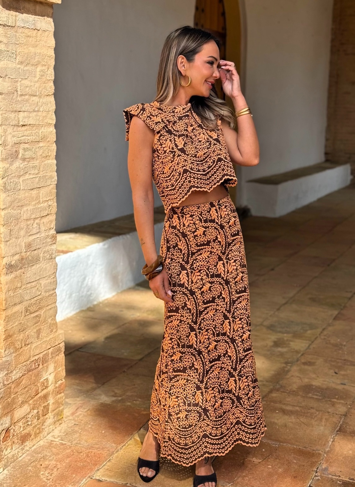 Conjunto Solapas Calado Marrón