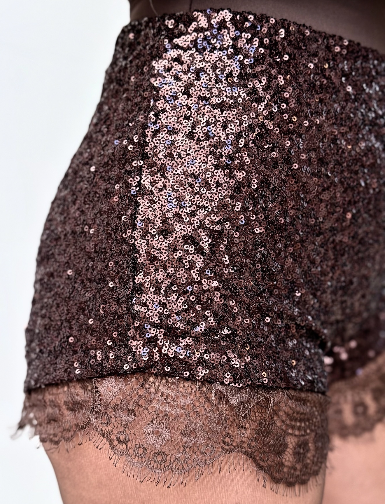 Shorts Lentejuela Encaje Marrón