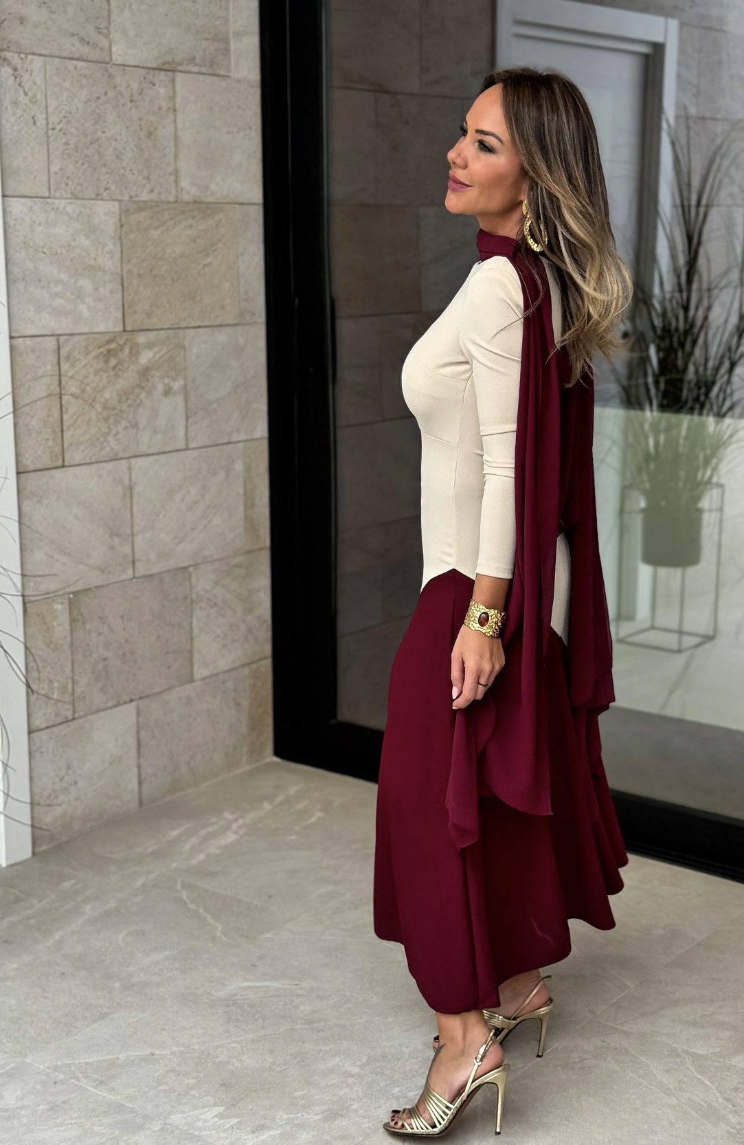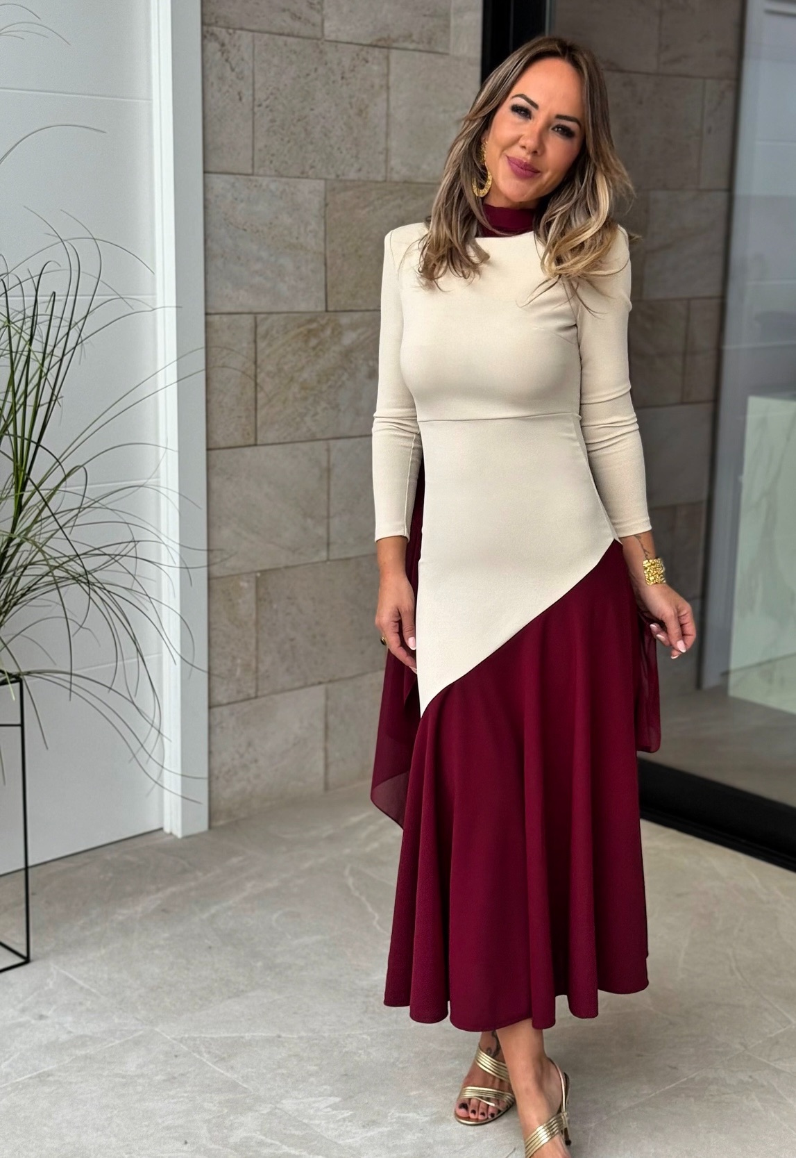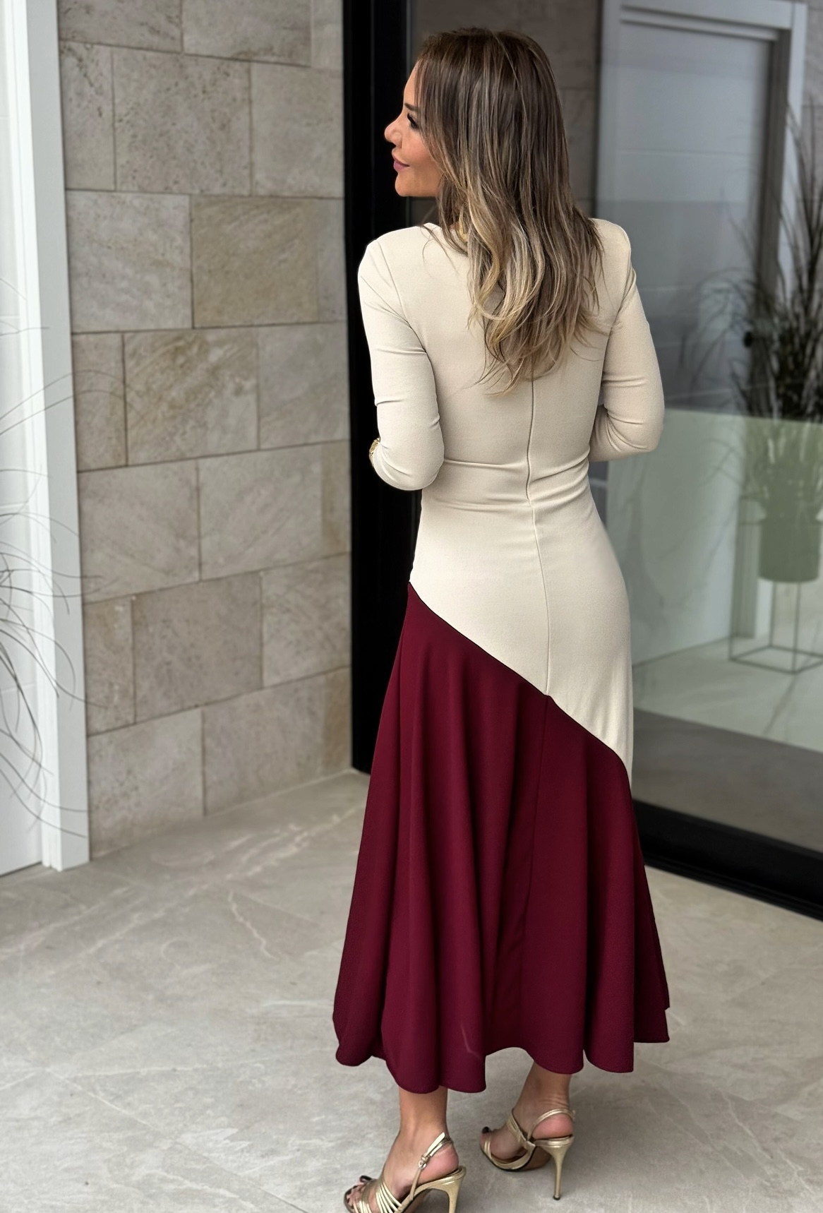 Vestido Bicolor Beige