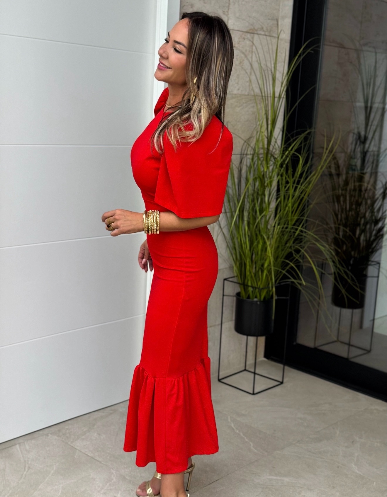 Vestido Farol Volante Rojo