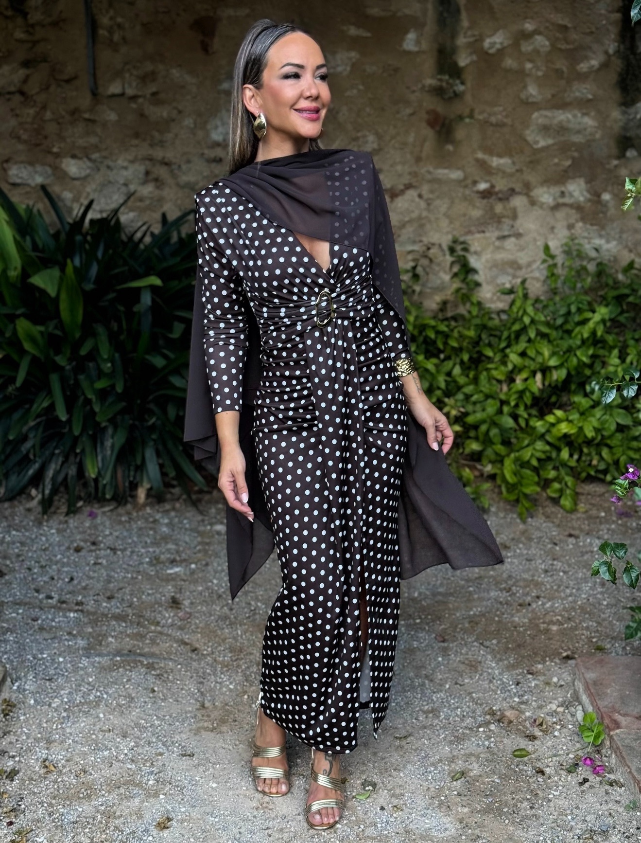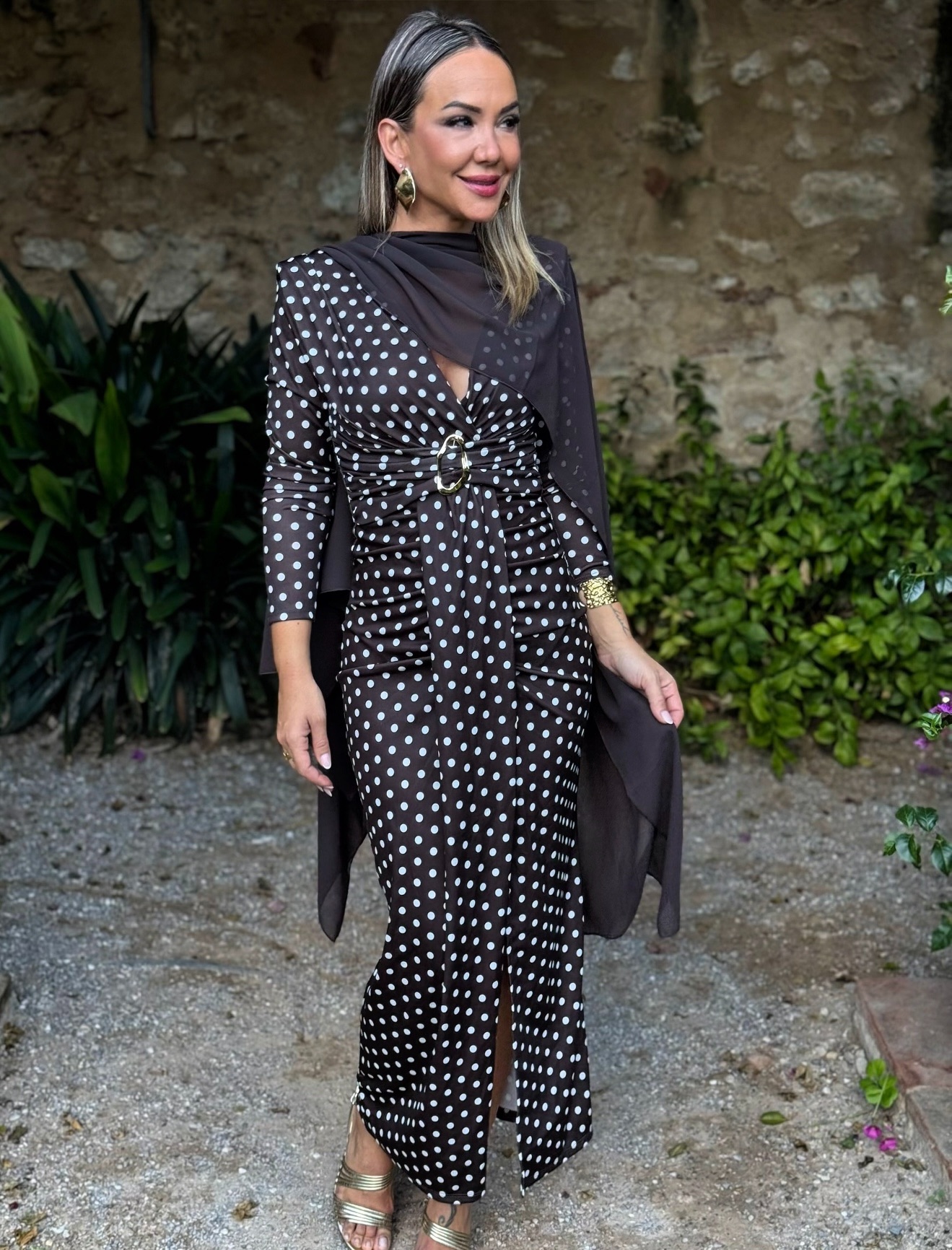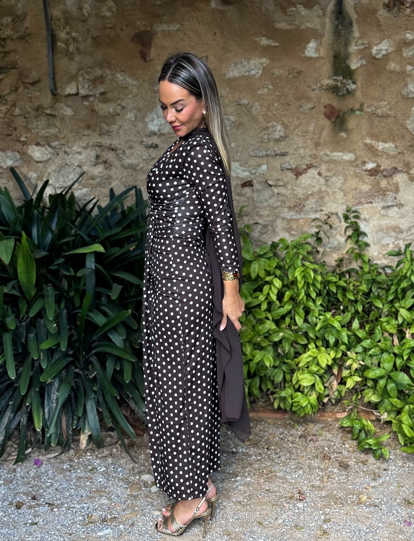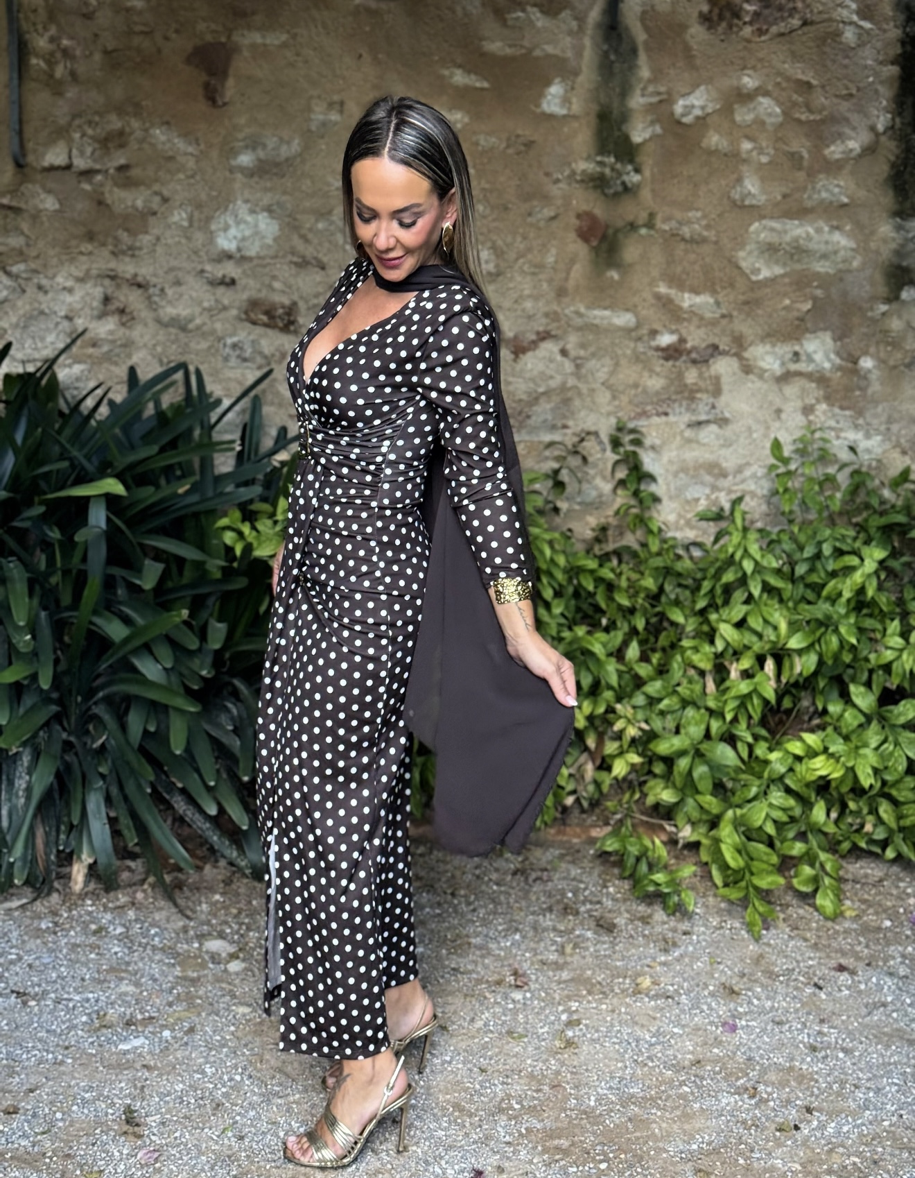 Inicio > Tienda > Colección > Vestido Lunares Aplique Dorado Marrón