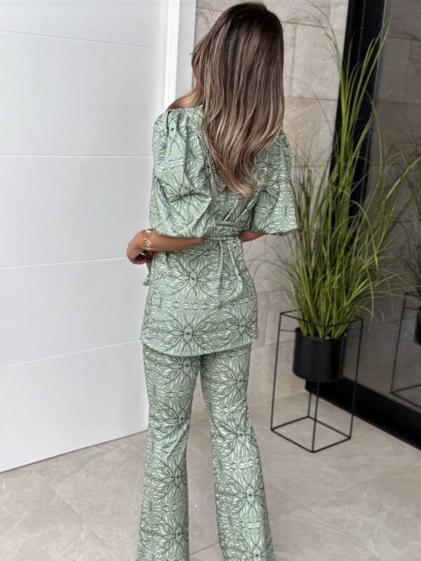 Vestido midi de punto elástico media manga escote profundo, detalle fruncido central y espalda abertura con botones dorados y corte detras.