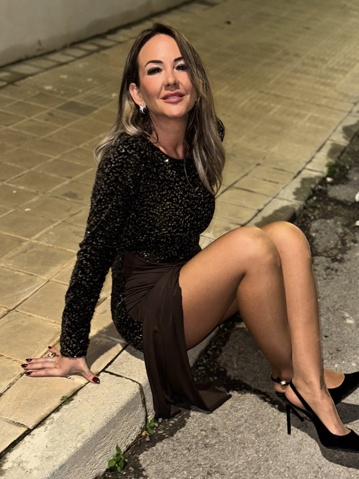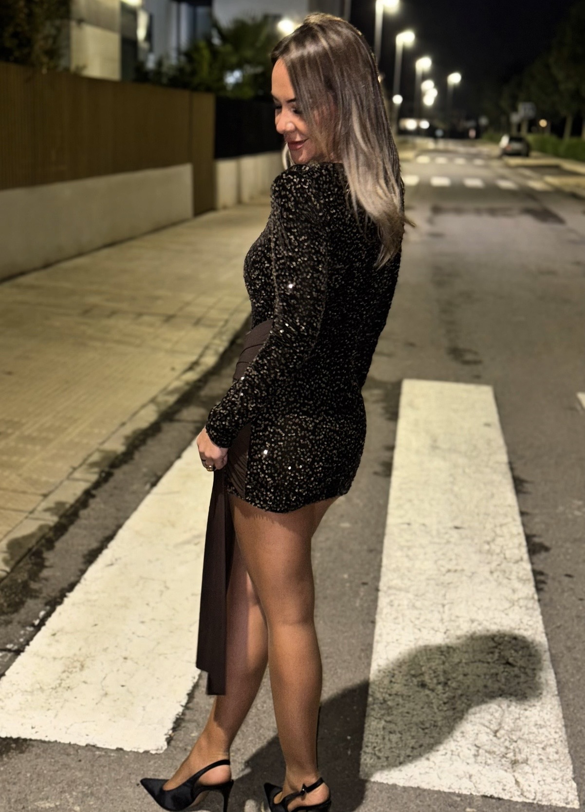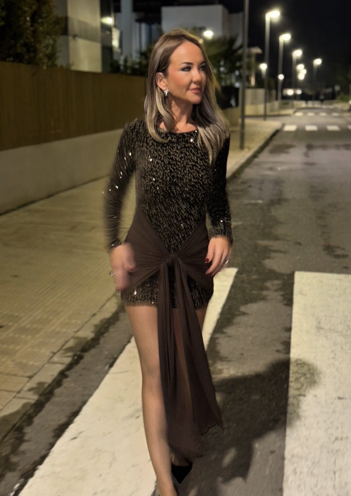Vestido Mini Lazada Lentejuela Marrón