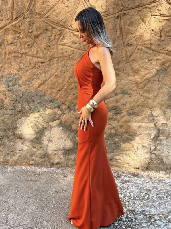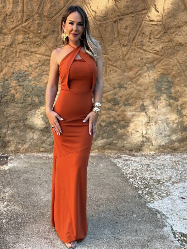 Vestido corto lentejuela, escote halter y espalda descubierta.