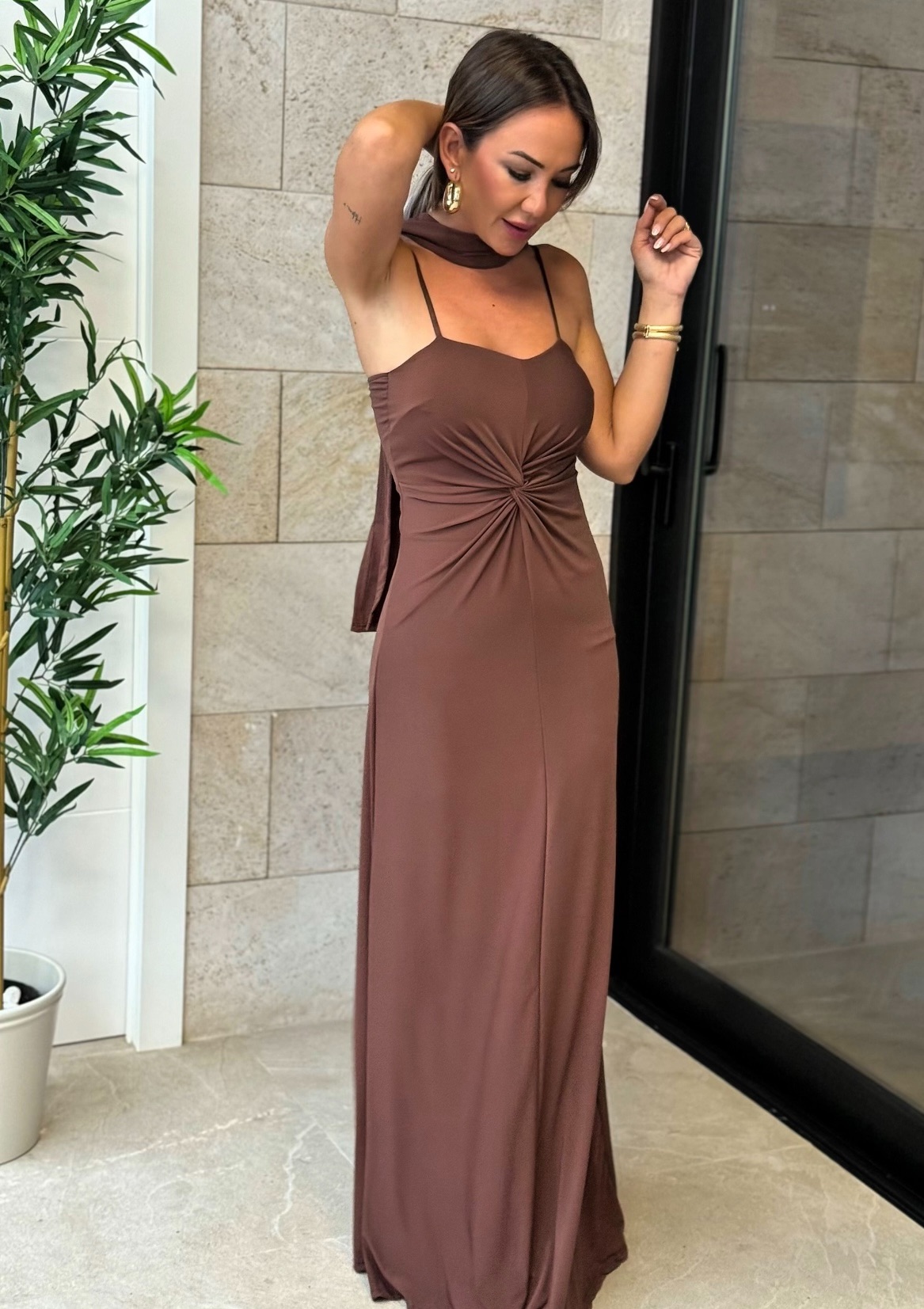 Vestido Nudo Tirante Marrón