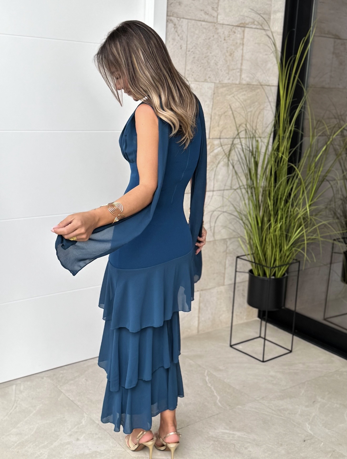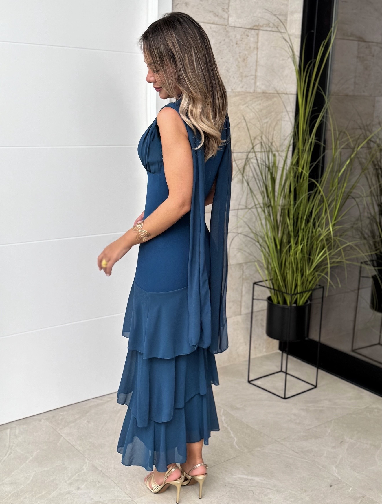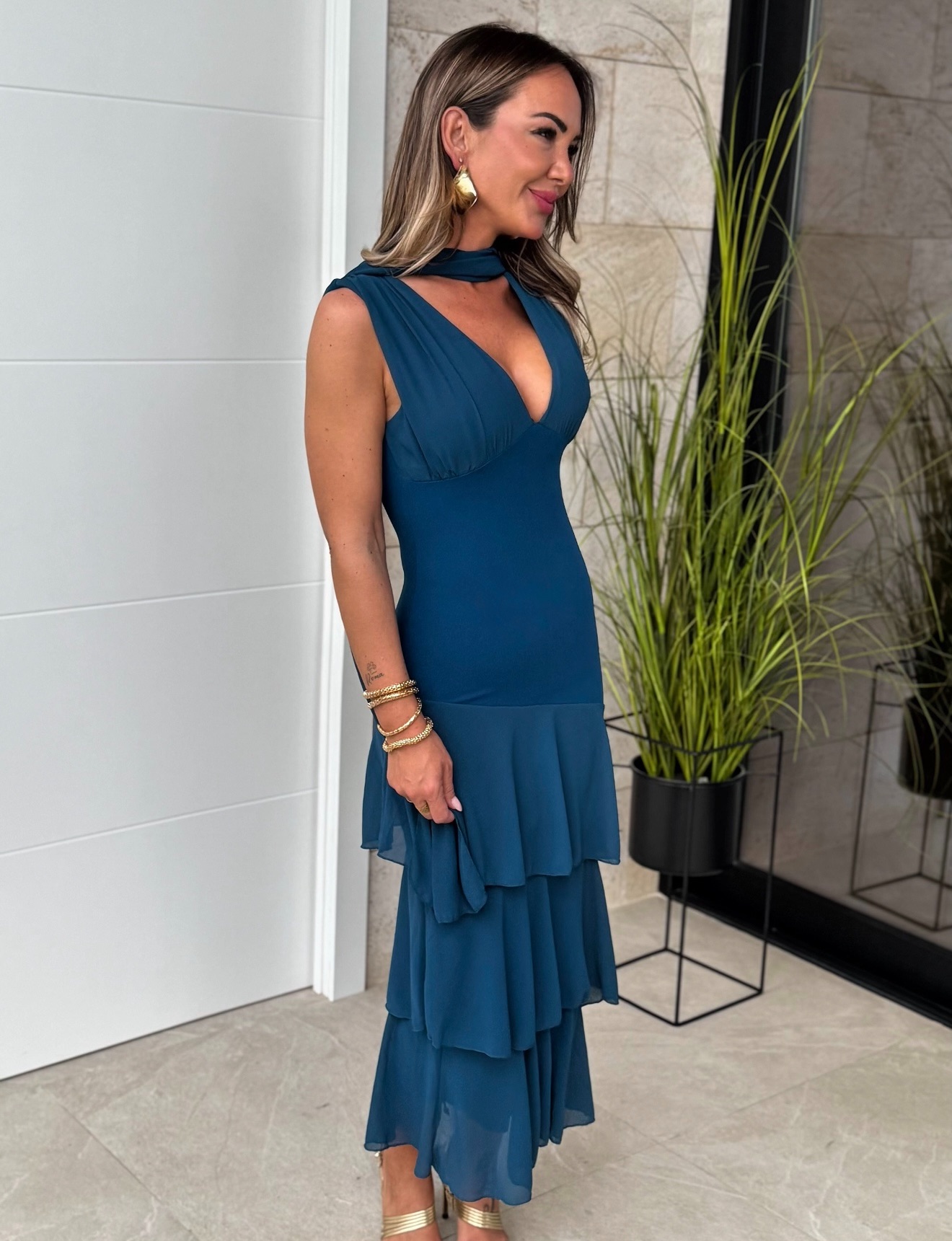 Vestido Volante Fular Petróleo