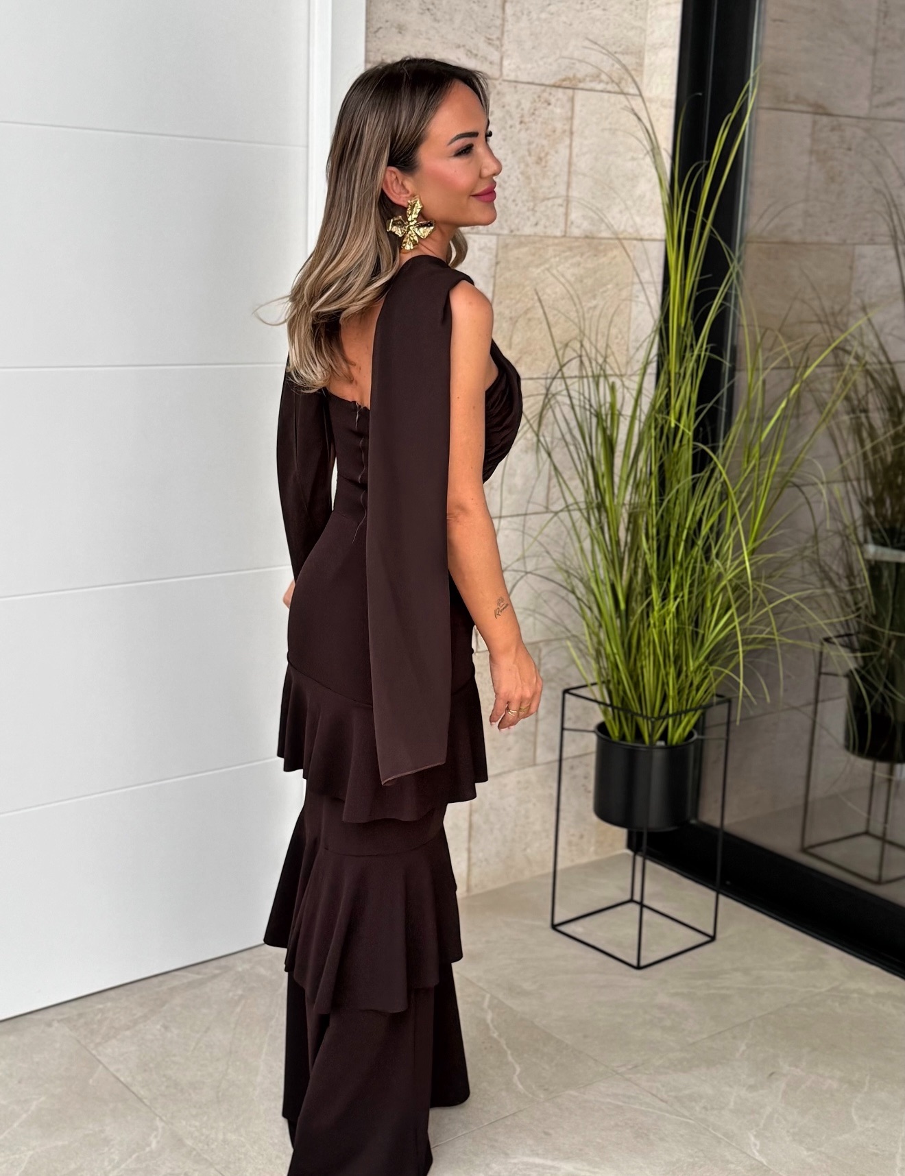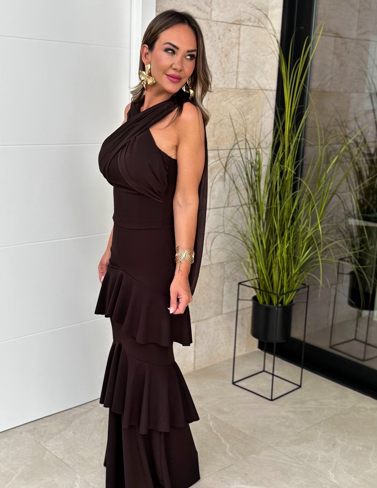 Vestido Volantes Cruzado Marrón