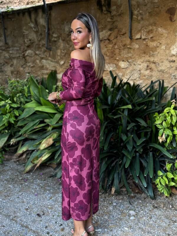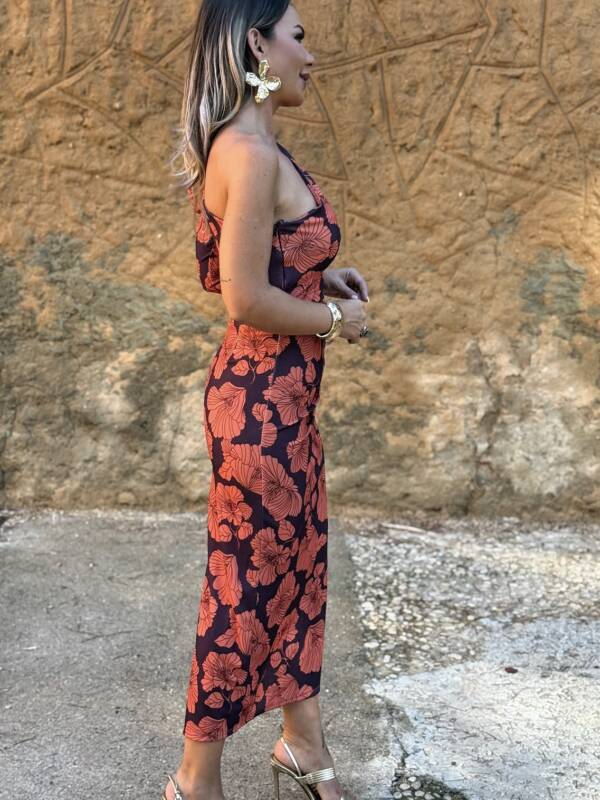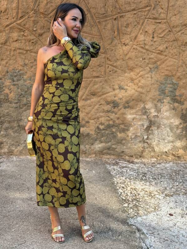 Vestido Asimétrico Dos Mangas Negro Estampado